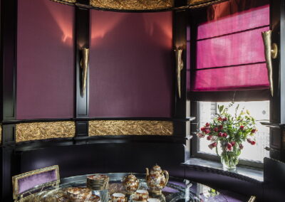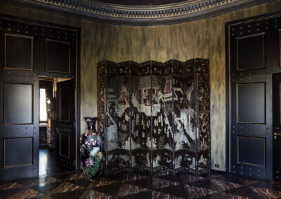 Today the villa has undergone a complete renovation in Art Deco style without compromising the external and internal original elements of décor, part of the building’s history. Inside the entire surface are enriched with marble, precious stones, rare amethyst wall panels and a large private collection of antiques and art works. The floors of the villa are reached by a stylish spiral staircase.
