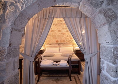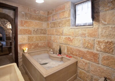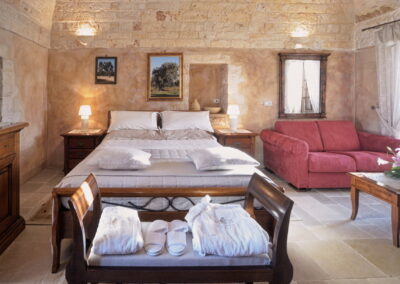 The beautiful swimming pool is surrounded by two traditional trulli. One of these houses has a luxurious master bedroom with an en suite bathroom and Jacuzzi. The other serves as an entertaining space. Here guests will also find a complete bar at their disposal. You will also find a spacious outdoor lounging and dining area.