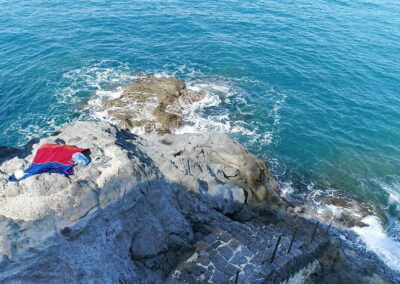 The large private terrace located on the lower floor also contain a swimming-pool filled with sea-water and there are several areas furnished for relaxing or dining outside with various locations for relaxing, gazebos, sauna, outdoor wood-burning stove and beautiful sea panorama, along with a descent down to the sea itself via a convenient flight of steps. Additional Bedroom 8 (available on request) Annex 2 Located at the beginning of the slope down to the sea, the last suite built and one of the most impressive, because it is dug directly into the rock of the coast. This room offers an exclusive view, has been furnished with a King size bed 180×200 cm., Air conditioning, En-suite bathroom with shower, Juliet balcony. (Important notice: Dependence n. 8 (built in the rocks) available only on request, in advance and if confirmed by the owner).
