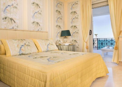 - Bedroom 8: King size bed 180×200 cm., Air conditioning, En-suite bathroom with shower, Juliet balcony, sea view.