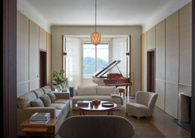 Overlooking Lake Como and occupying the site of a former medieval watchtower, Villa Peduzzi commands one of the finest views in Europe. The liberty style villa, built in 1909, has been fully restored to exceptional standard. This includes: 8 double bedrooms (6 ensuite); drawing room; living room; dining room; kitchen; study; media room, bar; 2 roof terraces, yoga/wellness room; pool house and entertainment area. All the bedroom suites are designed in a contemporary and stylish manner in keeping with the villa’s elegant features. An elevator links the 3 main floors and the caretakers apartment and laundry in the basement.