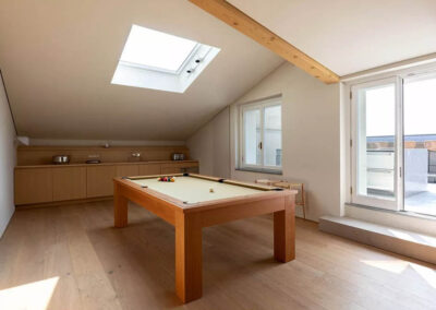This extraordinary open space provides a number of different entertainment areas. There are 2 large seating areas for enjoying the various entertainment possibilities (TV, projector, music system and board games). Additionally, there is a pool table, kitchenette and w.c. Two roof terraces providing glorious views over the lake are accessed from this floor. One of these also features an attractive island bar and raised viewing platform.