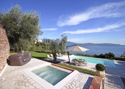 Villa Sentore is located 300 m above sea level, is surrounded by hectares of olive cultivation, an almost unique condition in the Lake Garda area. Every room has been finished and personalized in every detail; marble, elegant wooden decorations, sheets and sponges made of precious textiles and stylish furniture have been chosen and matched with care to exalt every bedroom. The property also features a nice wellness area overlooking the garden and the lake.The garden is filled with flower beds with essences and scented flowerings and by the expanse of the olive grove.